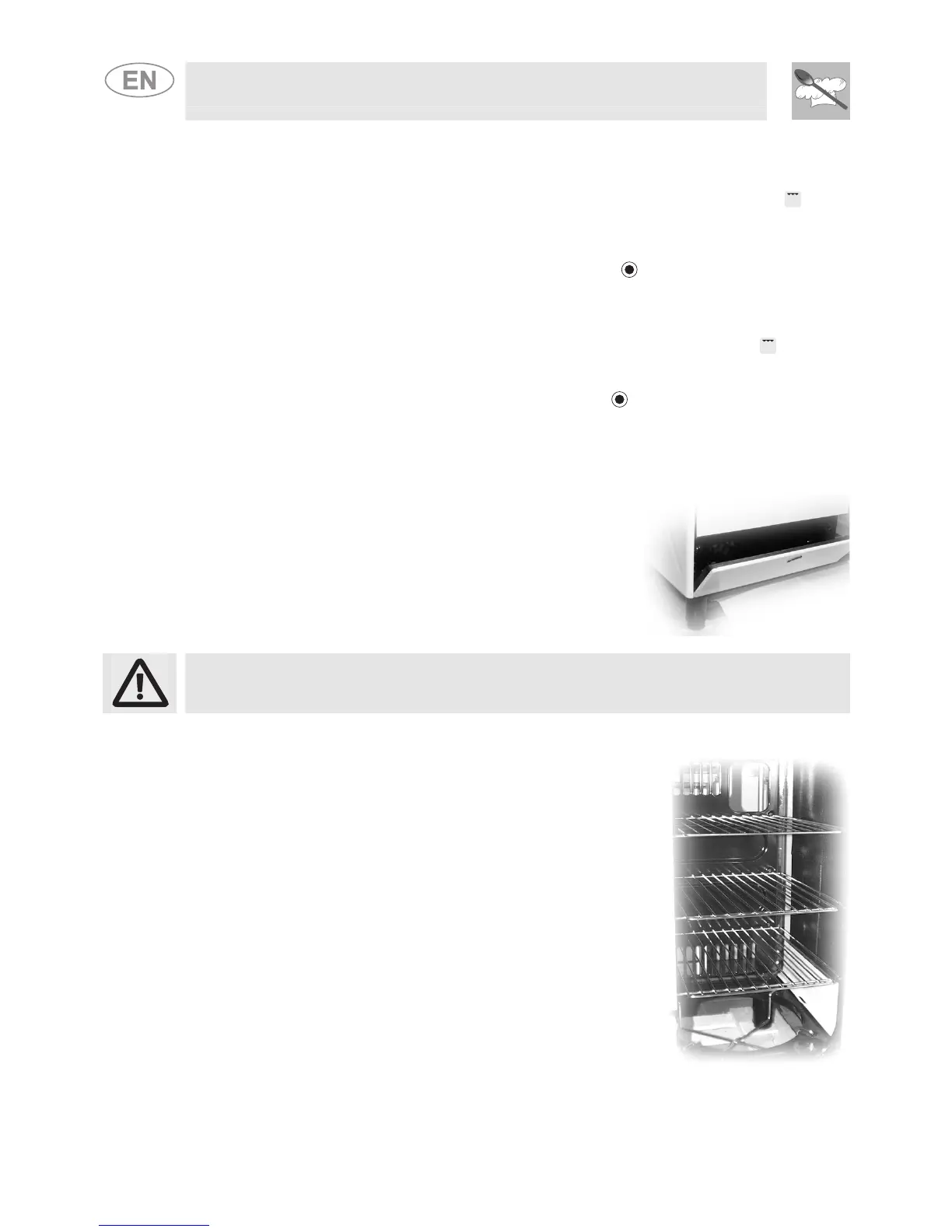 Do not open the storage compartment when the oven is on and still hot. The temperatures inside it