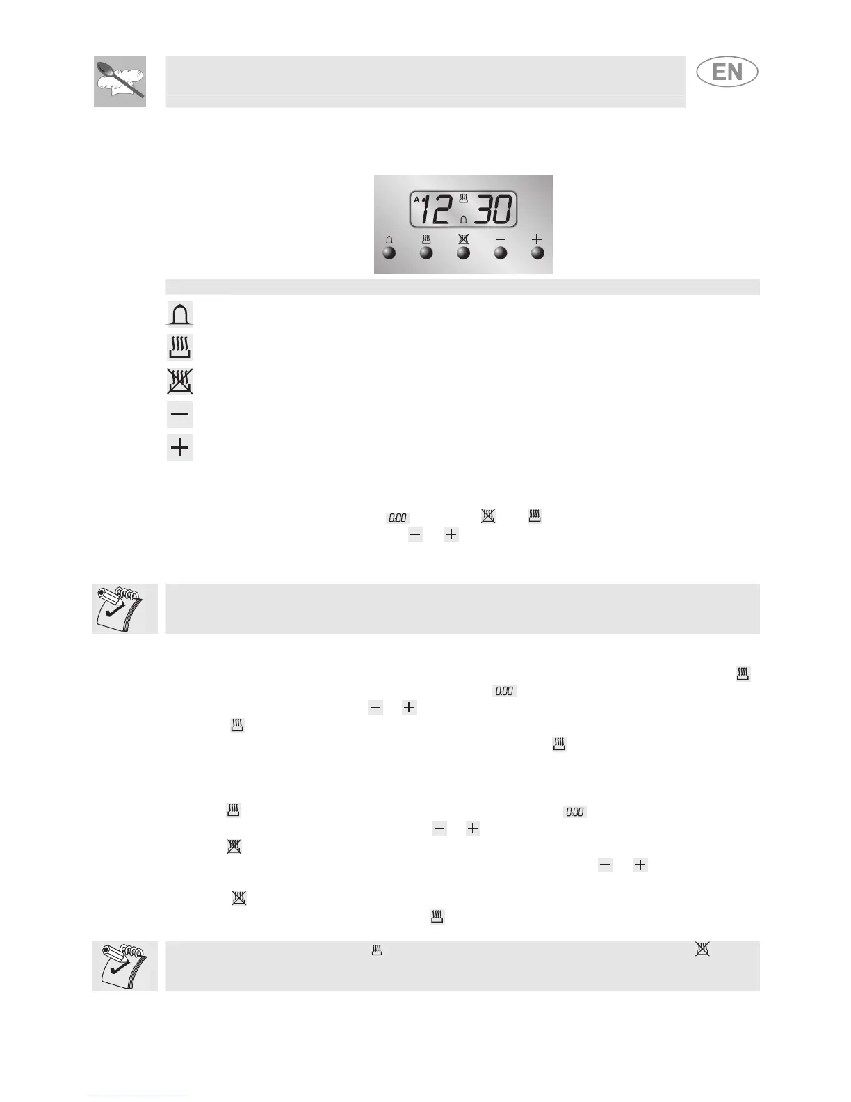 to view the cooking end time. The logic prevents the setting of incompatible values (e.g. the timer will