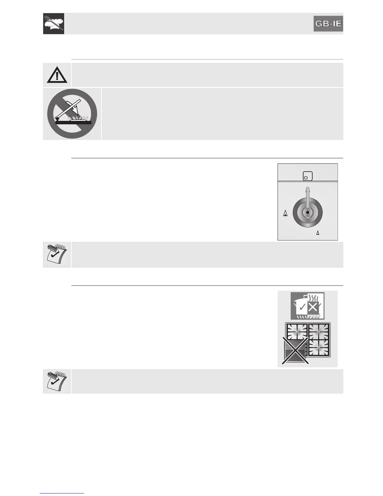 Before lighting the burners lift the glass lid (where present); before closing it again, turn off