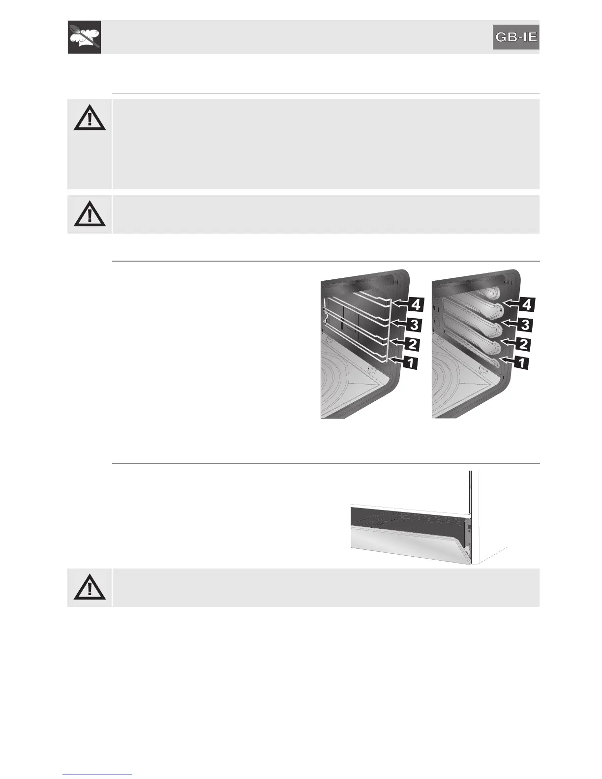 Do not open the storage compartment when the oven is on and still hot. The temperatures inside it may