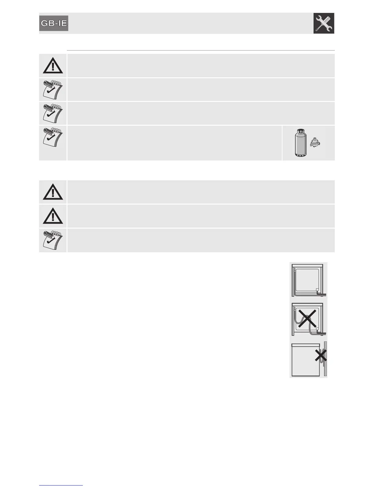 After carrying out any operation on the appliance, check the gas connections are properly tightened.