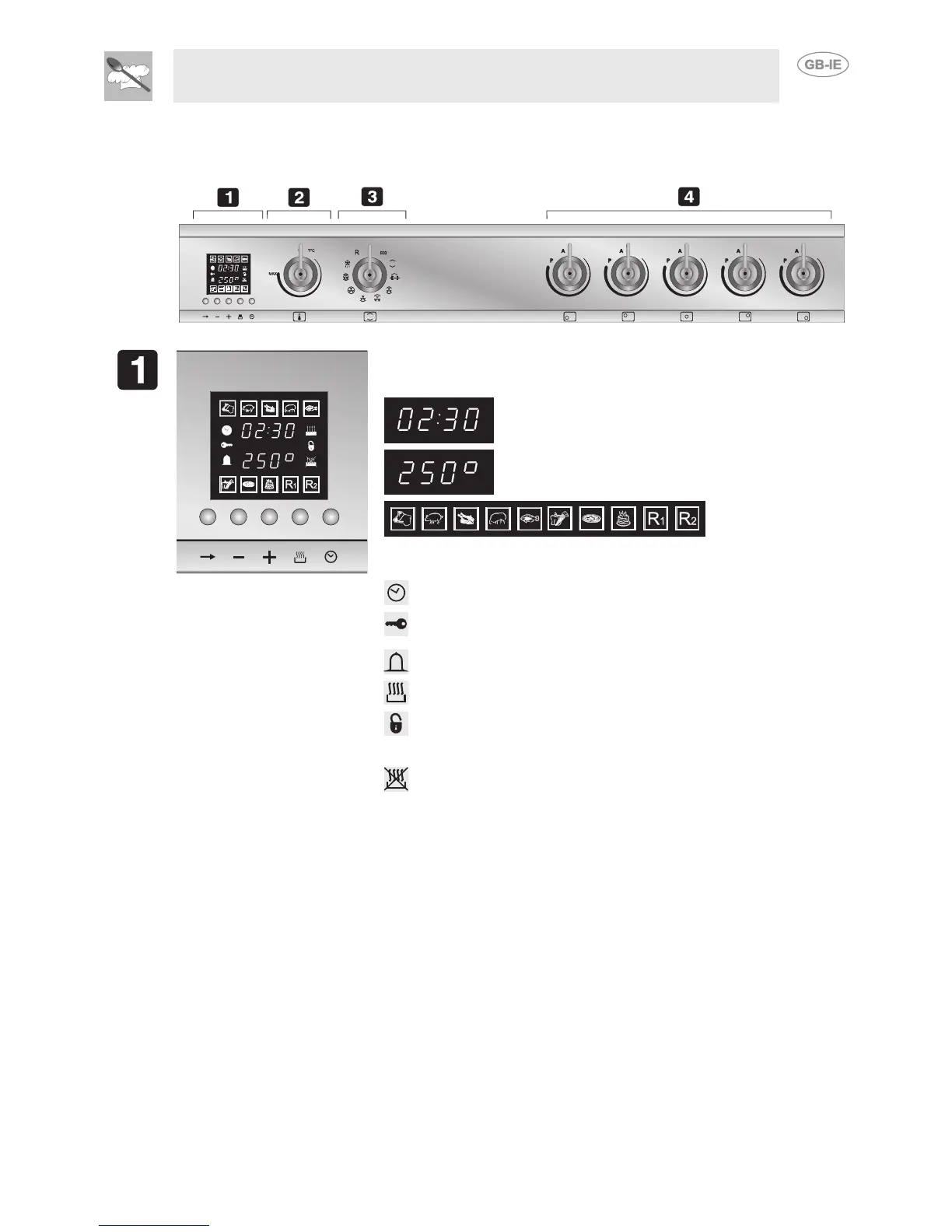 All the control and monitoring devices are clearly in view on the front panel. The symbols used are