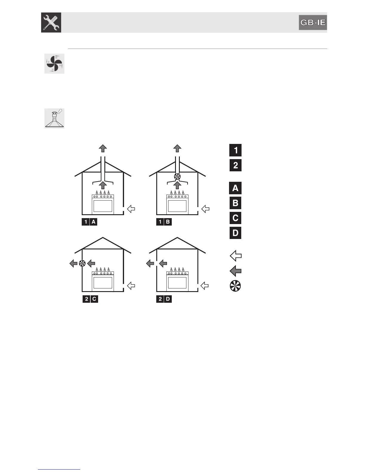 Combustion products can be extracted by means of hoods connected to a natural draught chimney