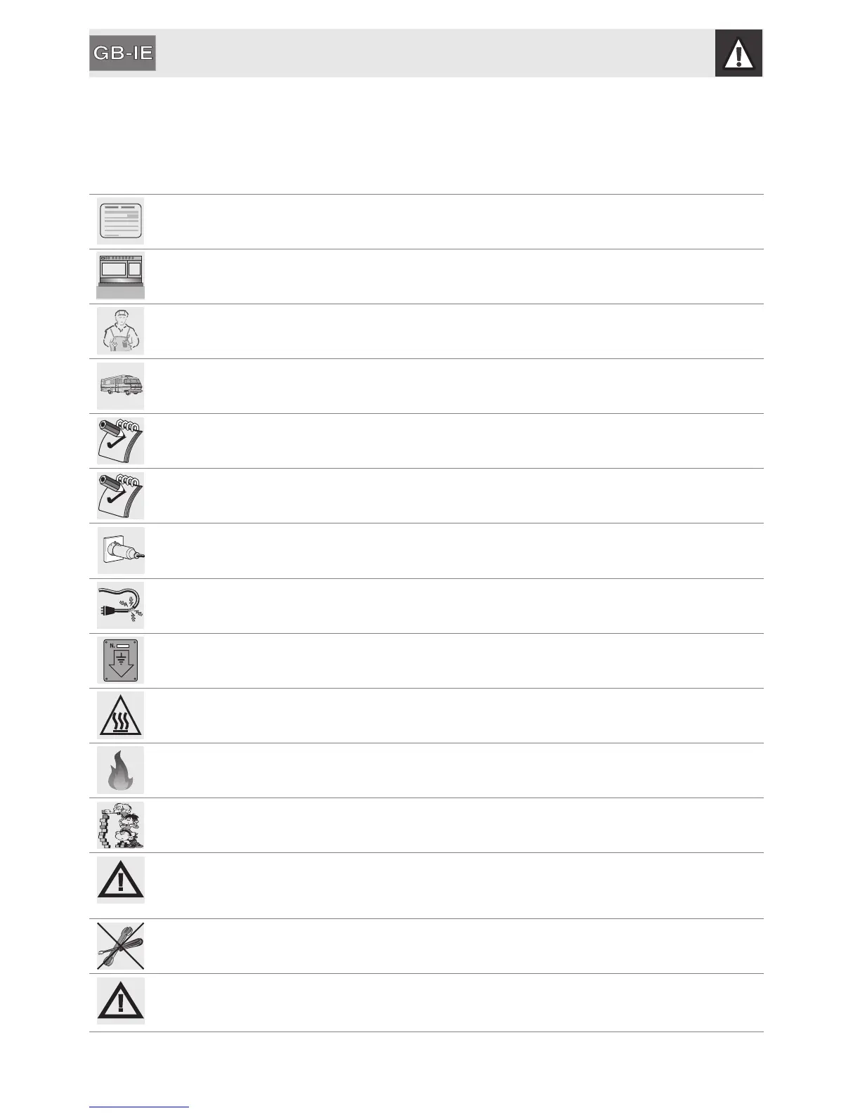 Gas or electrical appliances must always be uninstalled by suitably skilled people.