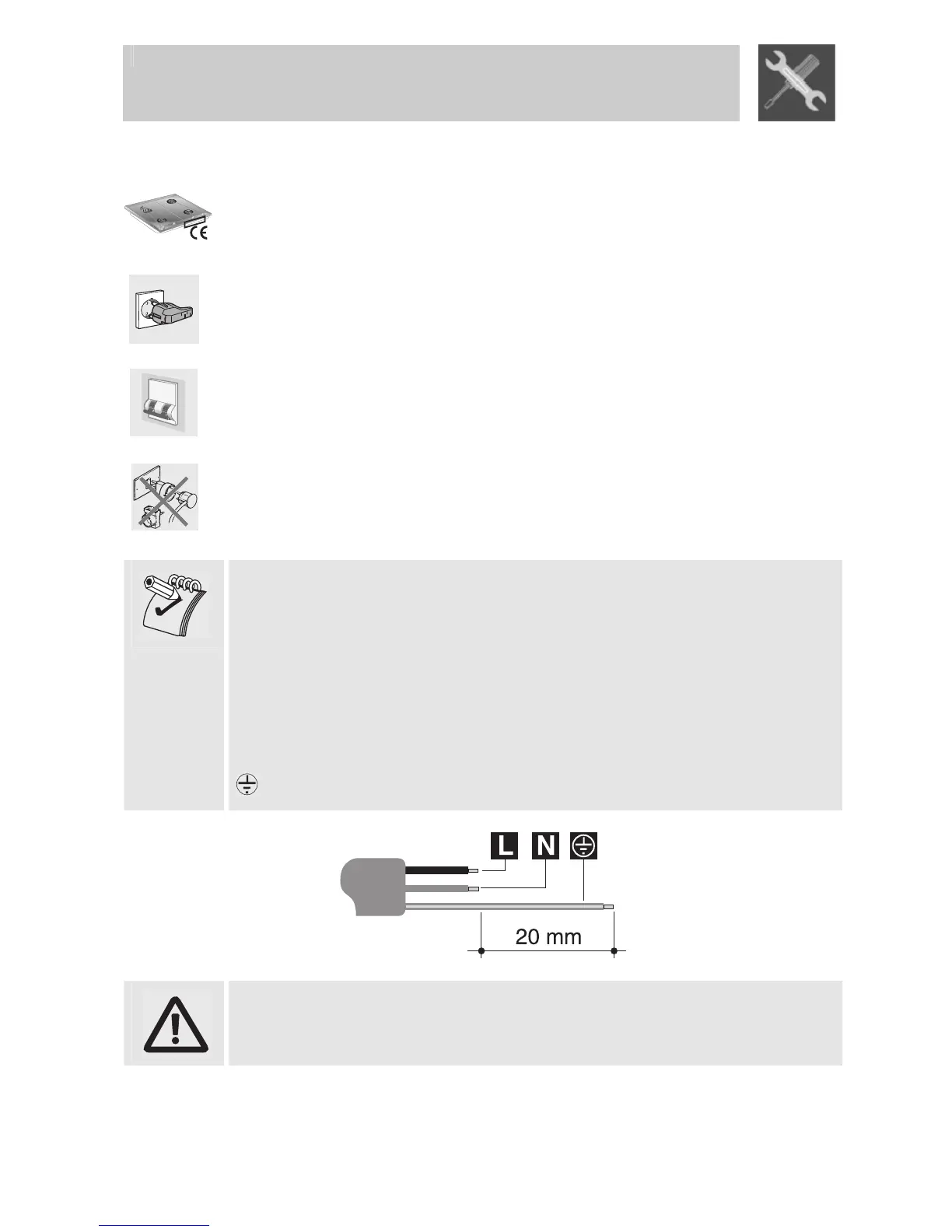 longer by at least 20 mm. Use only H05V2V2-F cable or similar which has