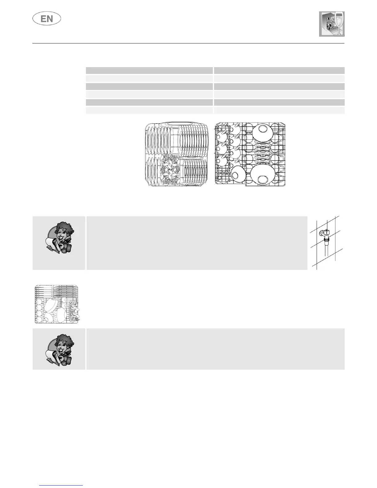 CAUTION: there is no point in loading dishes and cutlery in the lower basket, since the jet of