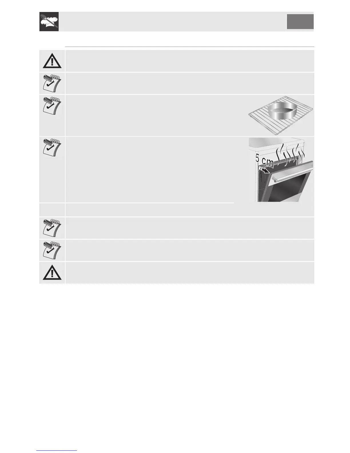 All cooking operations must be carried out with the door closed. The dissipation of heat may