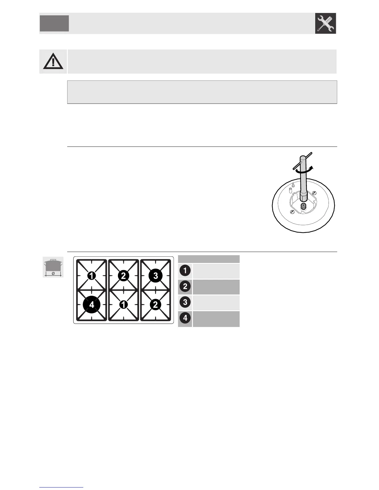 1 Remove the pan stands, and remove all burner caps and flame-spreader