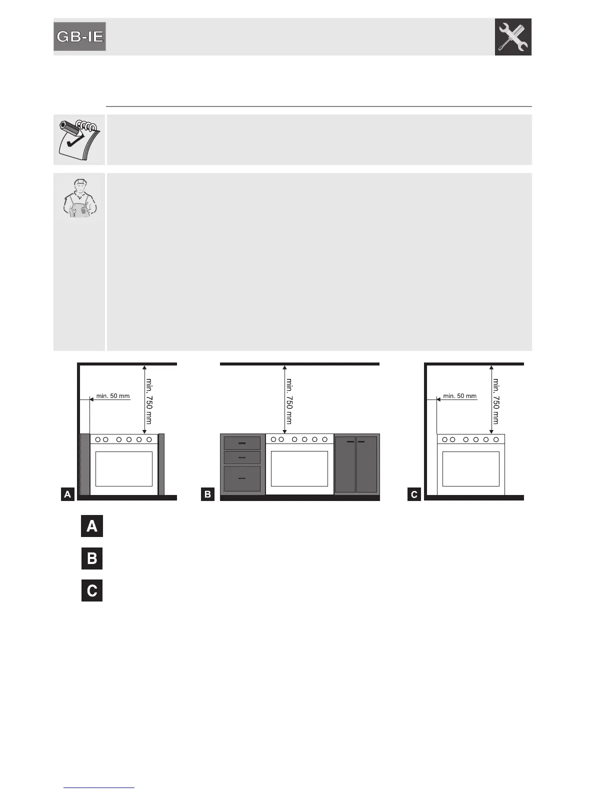 at a minimum distance of 50 mm from the side of the appliance, as shown in