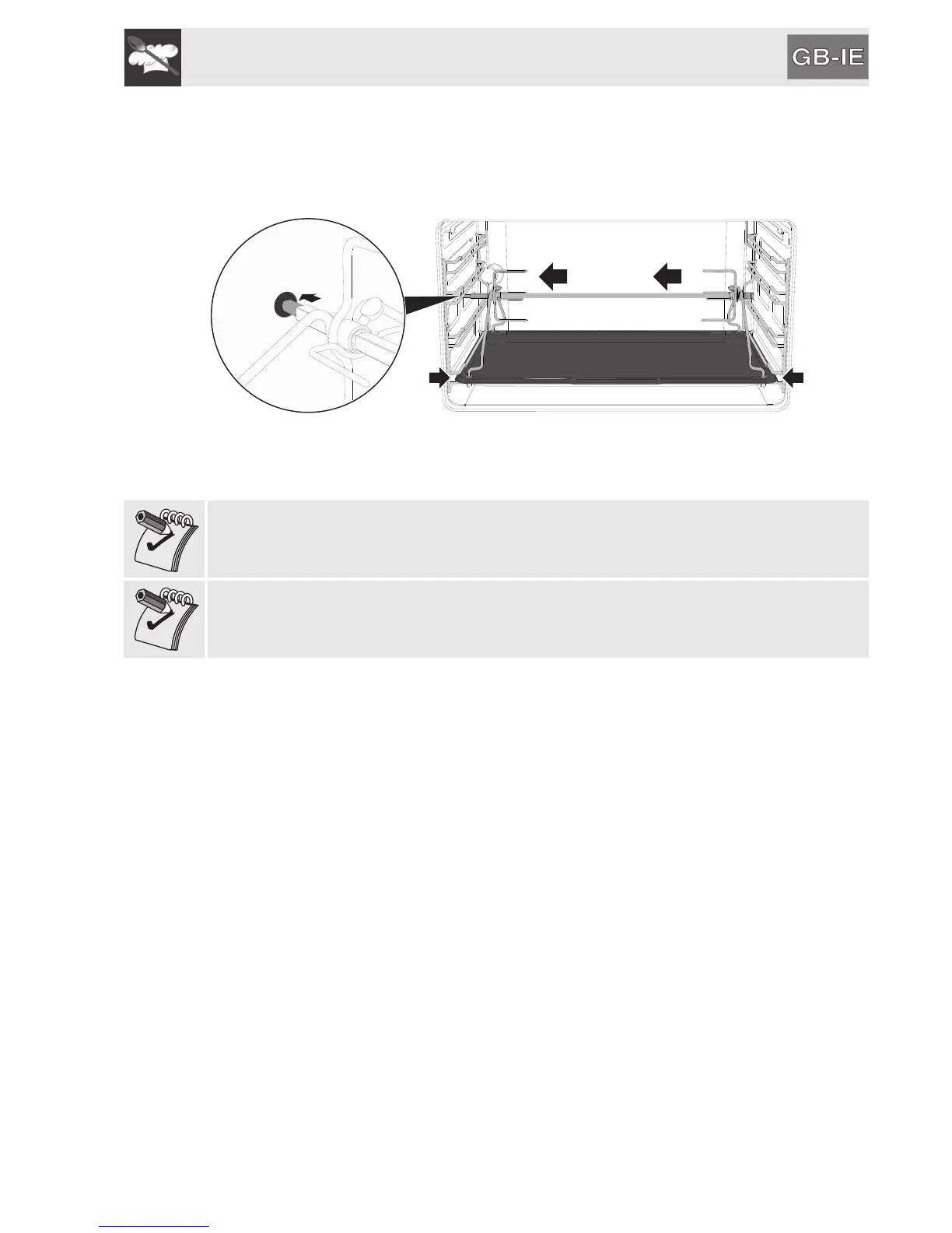 After having prepared the rotisserie rod, place the tray on the first runner (see 4.