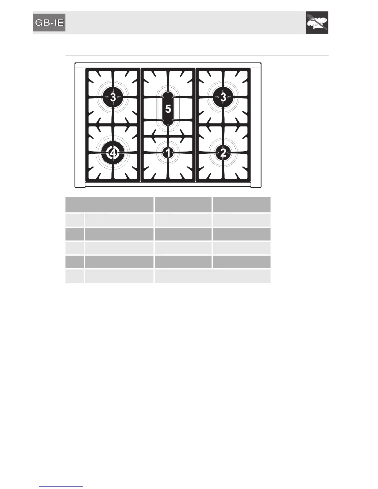 Burner Ø min. (cm) Ø max. (cm)