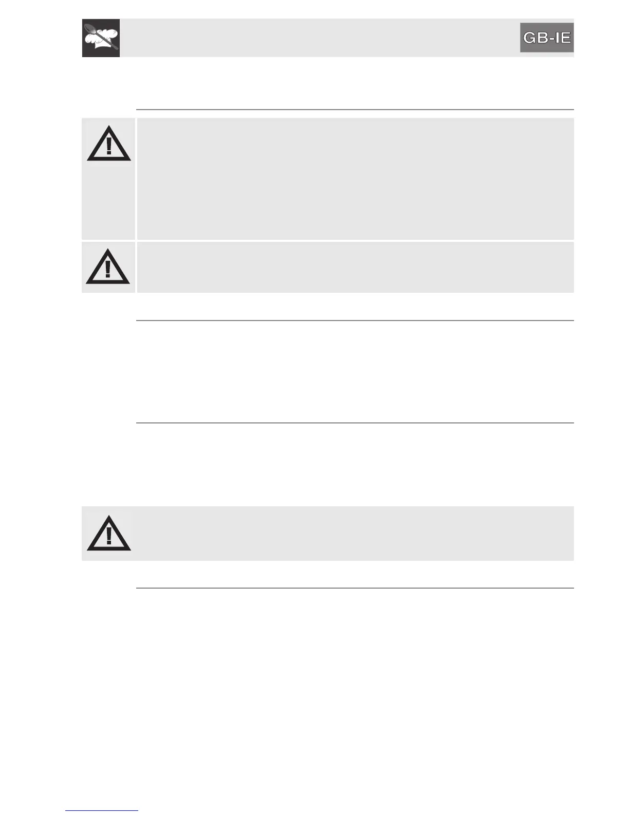• Remove any labels (apart from the technical data plate) from trays, dripping