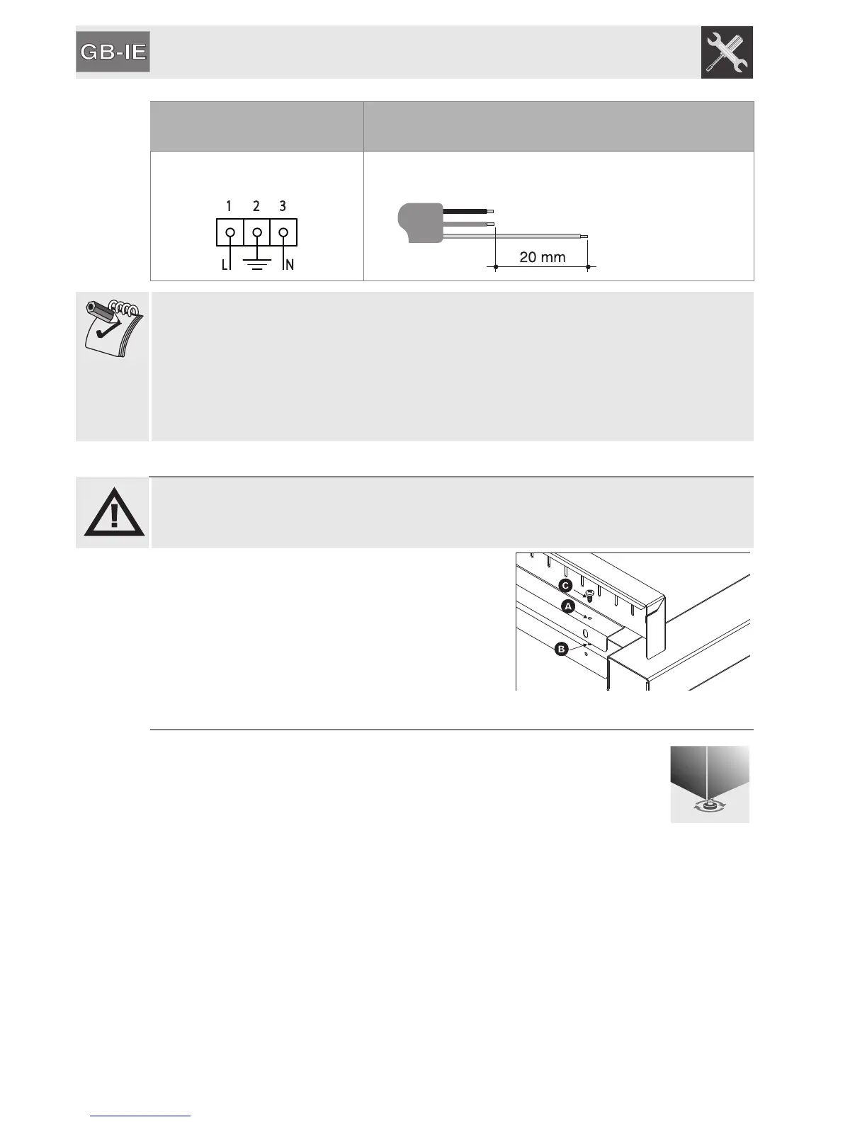 11.6 Positioning and levelling the appliance