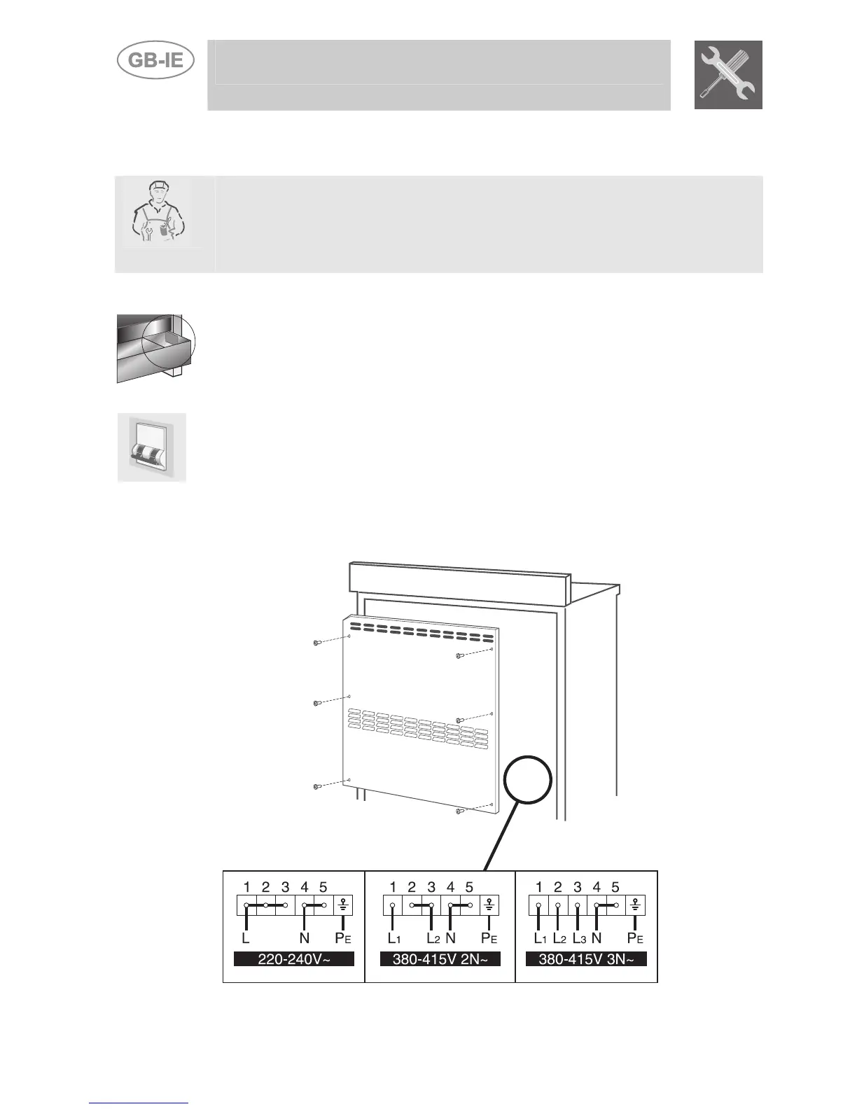 The appliance has a terminal board on its rear for the electrical