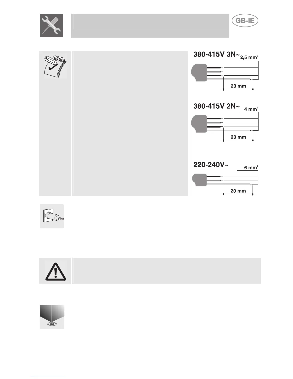 technical data plate) or, for appliances operating on 220-240V∼, a three-