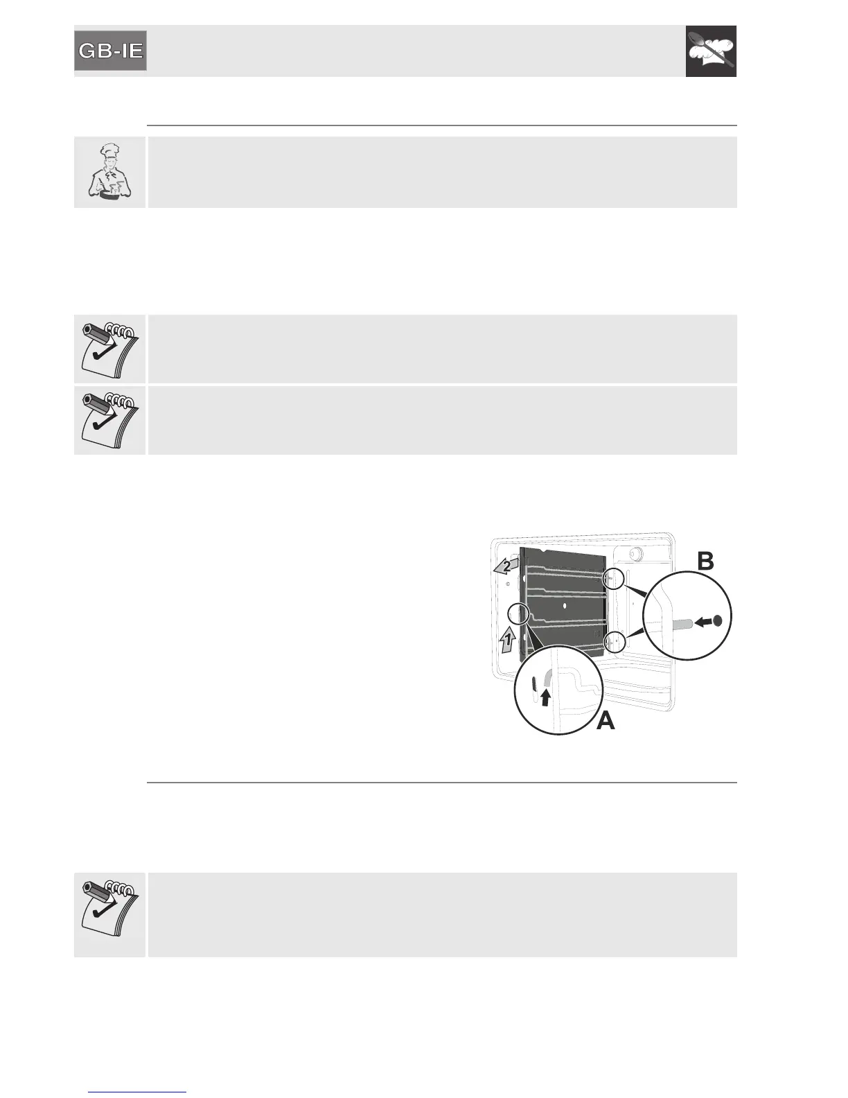 • Clean the oven racks with warm water and non-abrasive detergent. Rinse