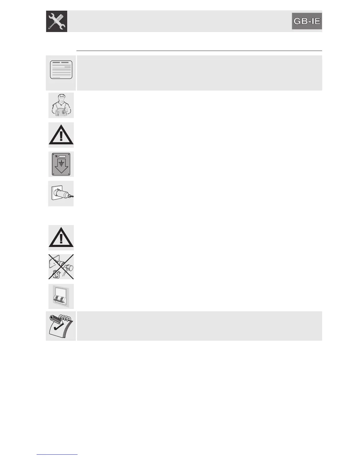 Before performing any operations, switch off the power supply to the appliance.