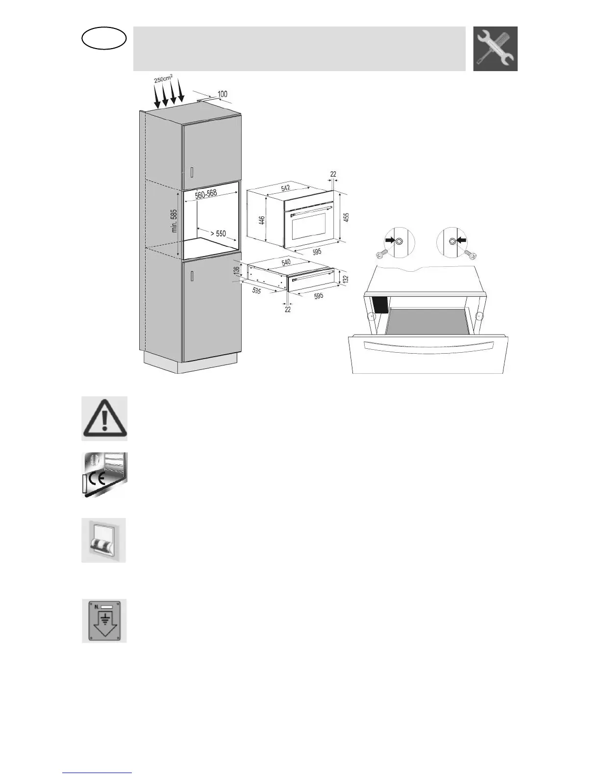 WARNING: THE WARMING DRAWER MUST BE EARTHED.