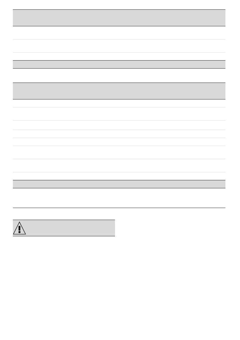 Cooking information table (auxiliary oven)