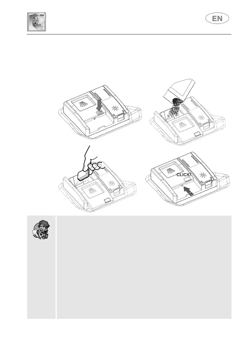 detergent or tablet and close the cover by sliding it until it stops, indicated