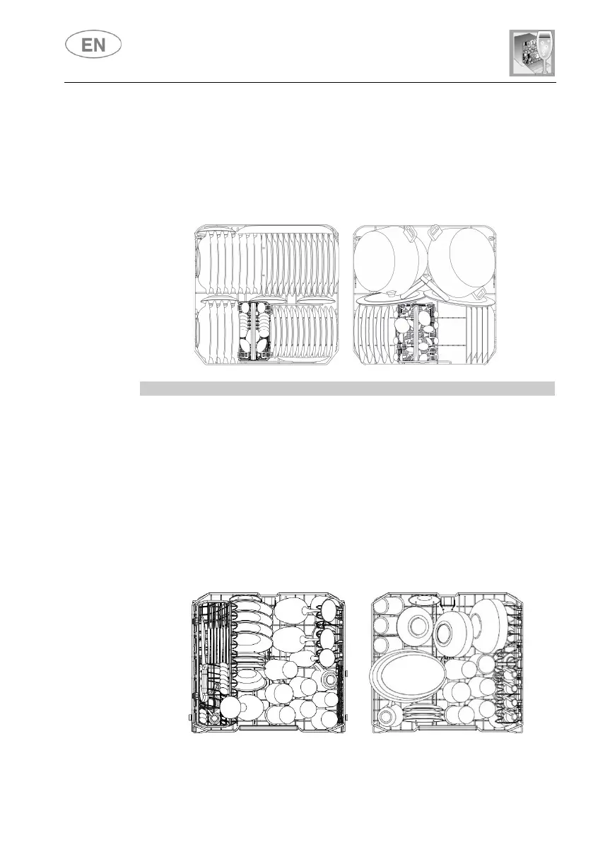 Load plates facing forward; cups, bowls etc. must always be facing
