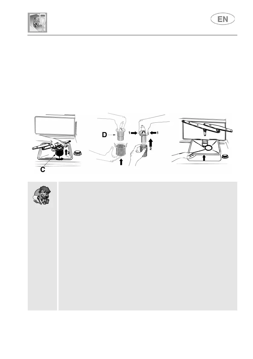 necessary, to clean it. To remove the filter, grip the tabs, turn them