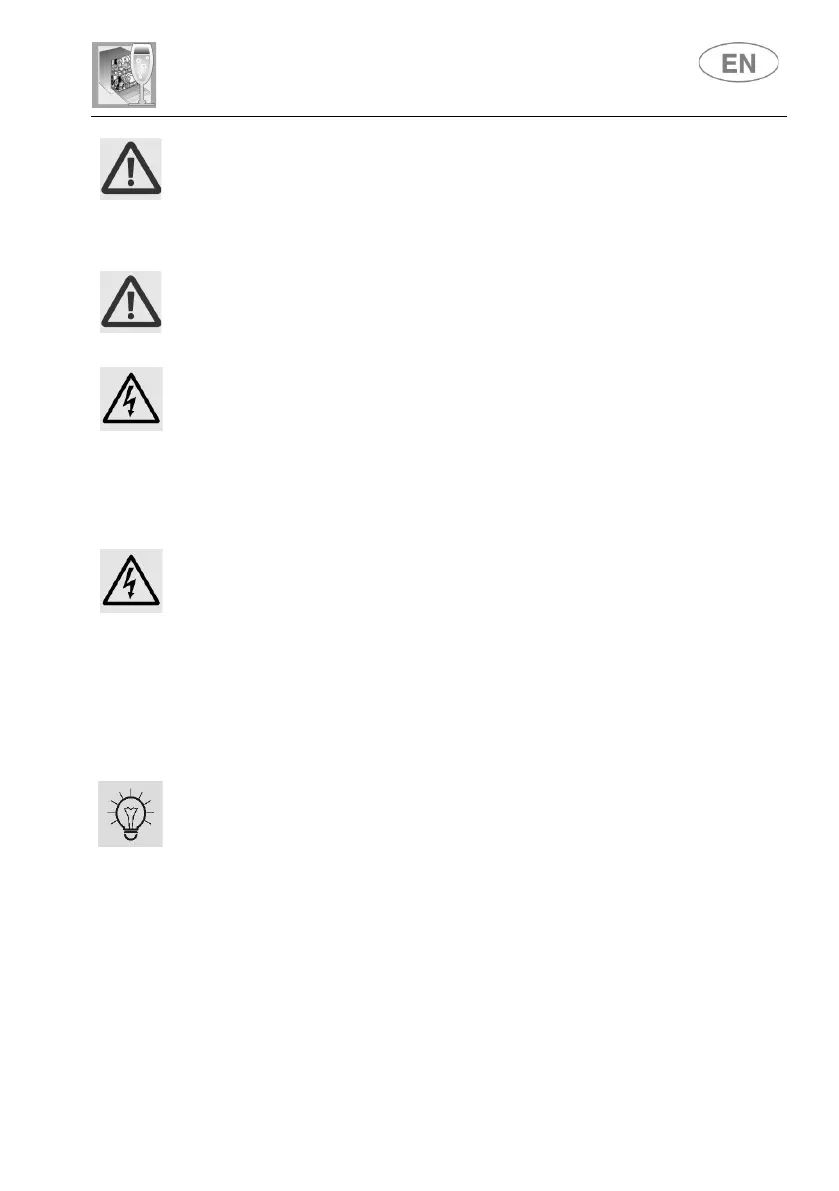 IN THE EVENT OF A FAULT, DISCONNECT THE DISHWASHER FROM THE