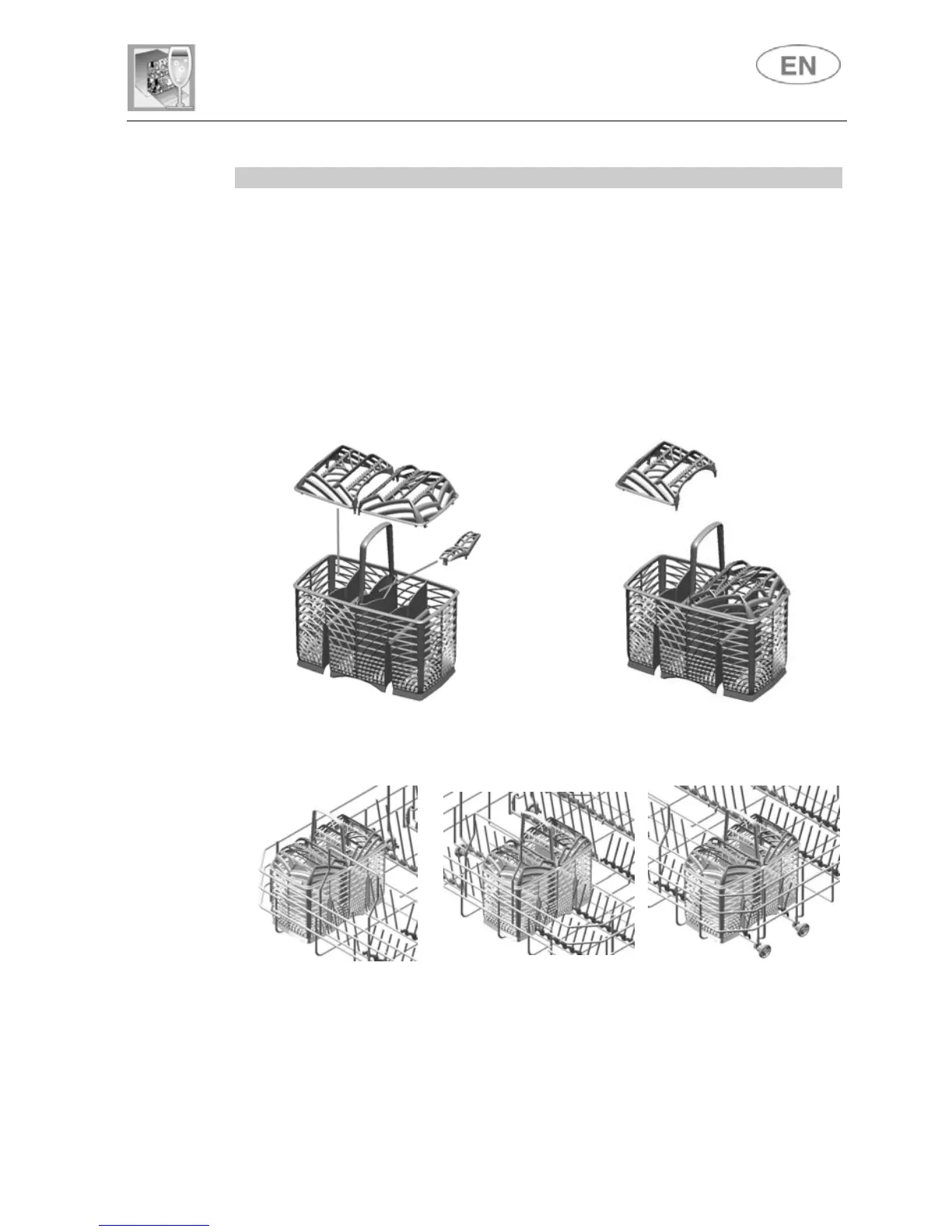The basket has removable top grids into which items of cutlery should