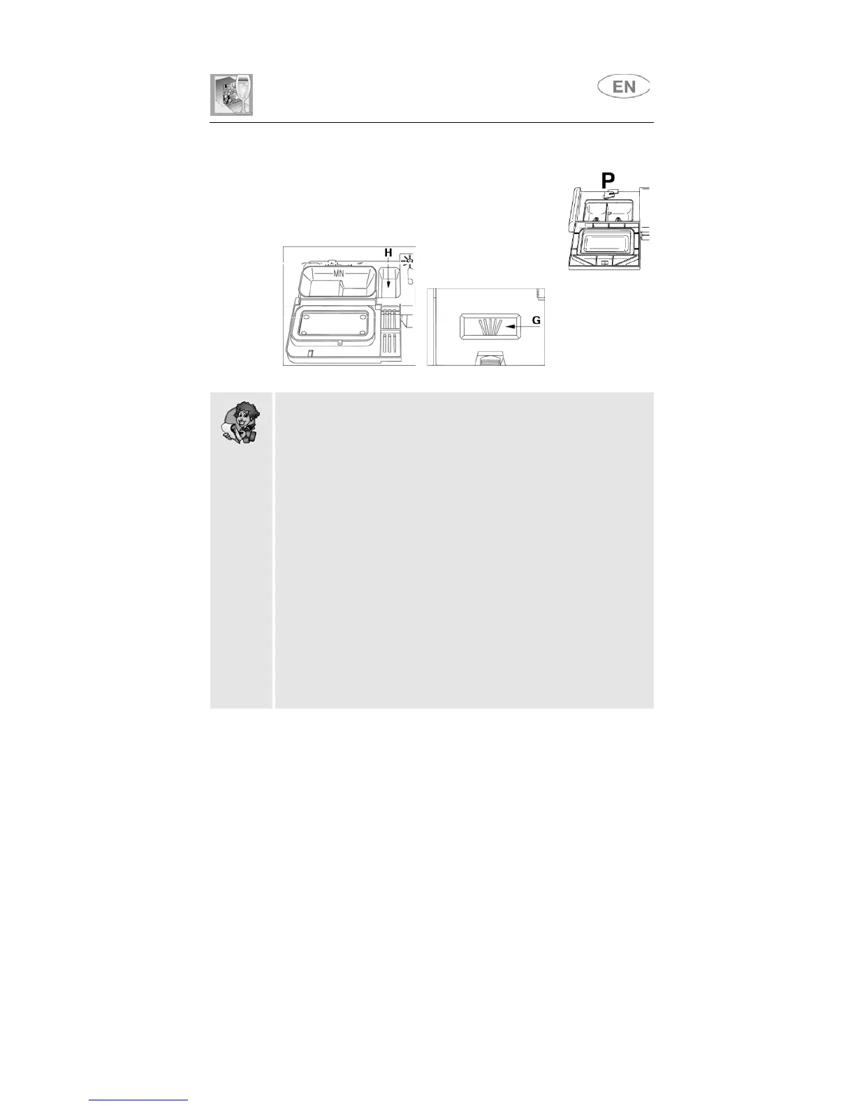 extra detergent must be placed in the cavity G/H (depending on