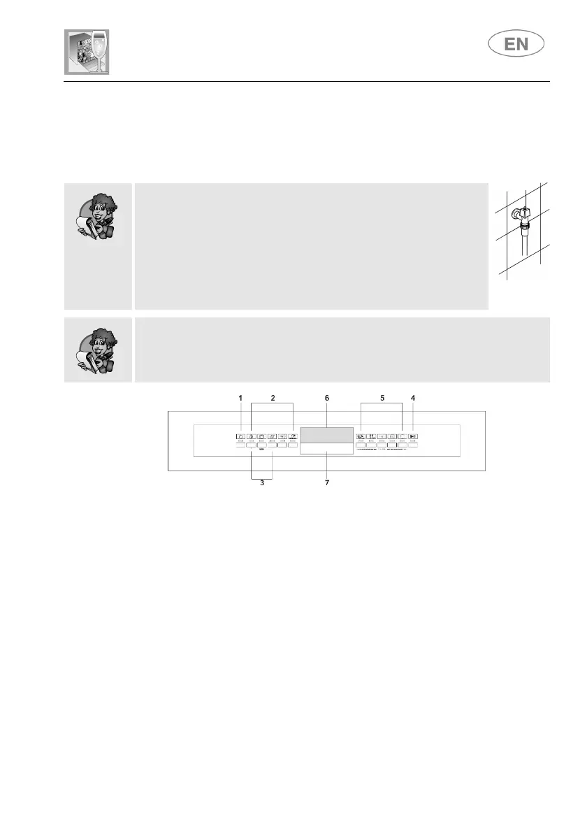 Pressing the ON/OFF button will start the dishwasher and will lit up the
