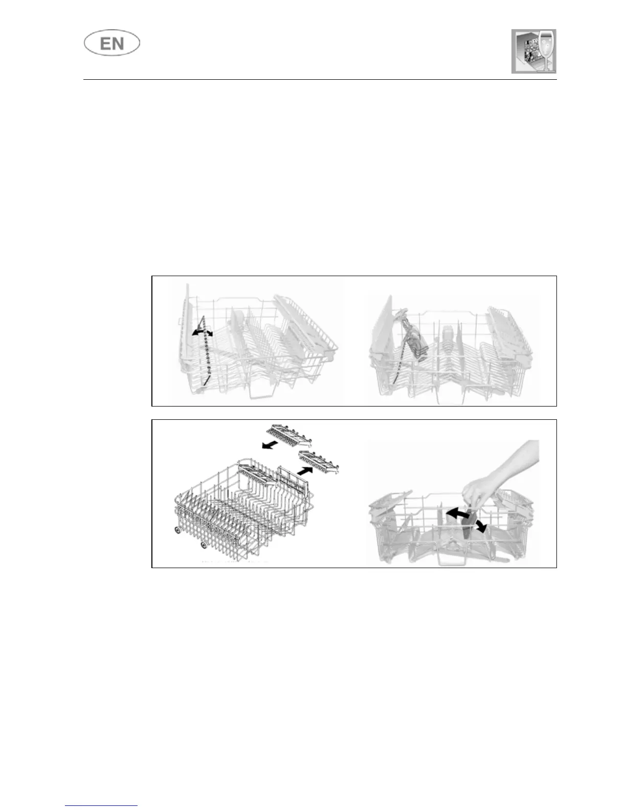 - Cutlery racks, on the right, designed for knives and teaspoons;