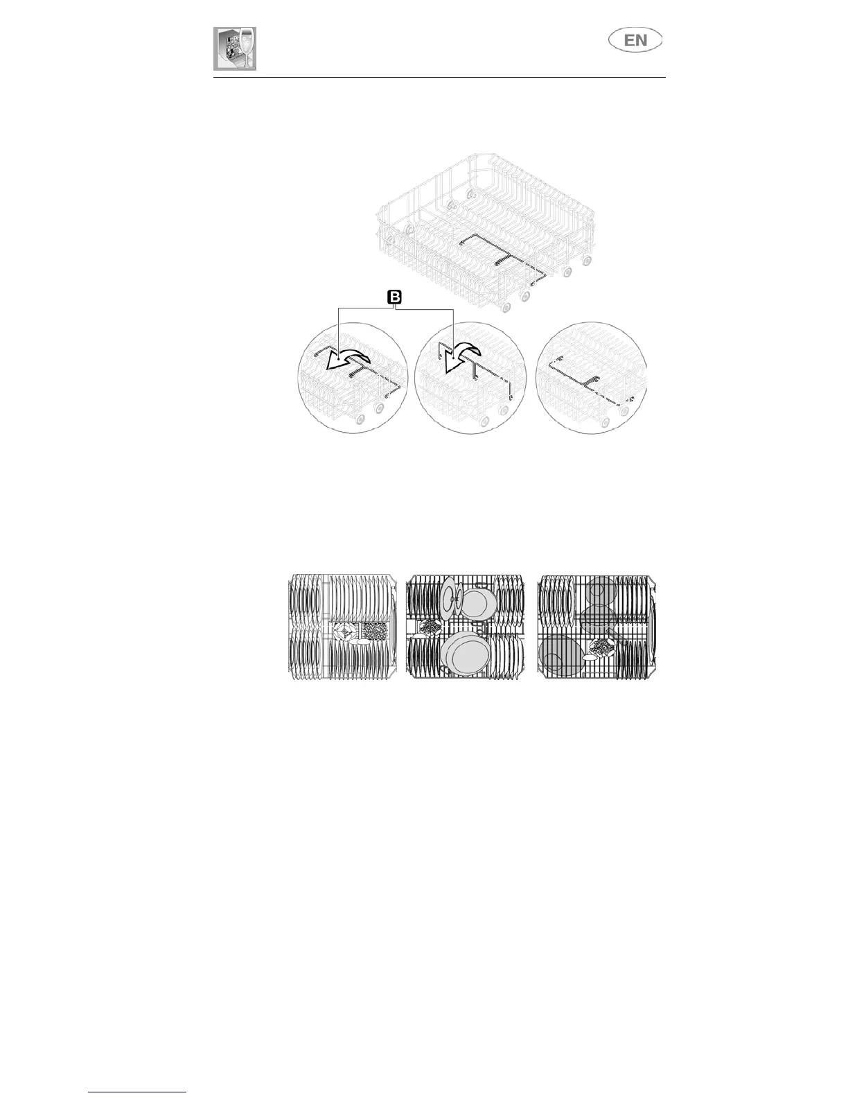 positioning them vertically. Pots, pans and their covers must be loaded