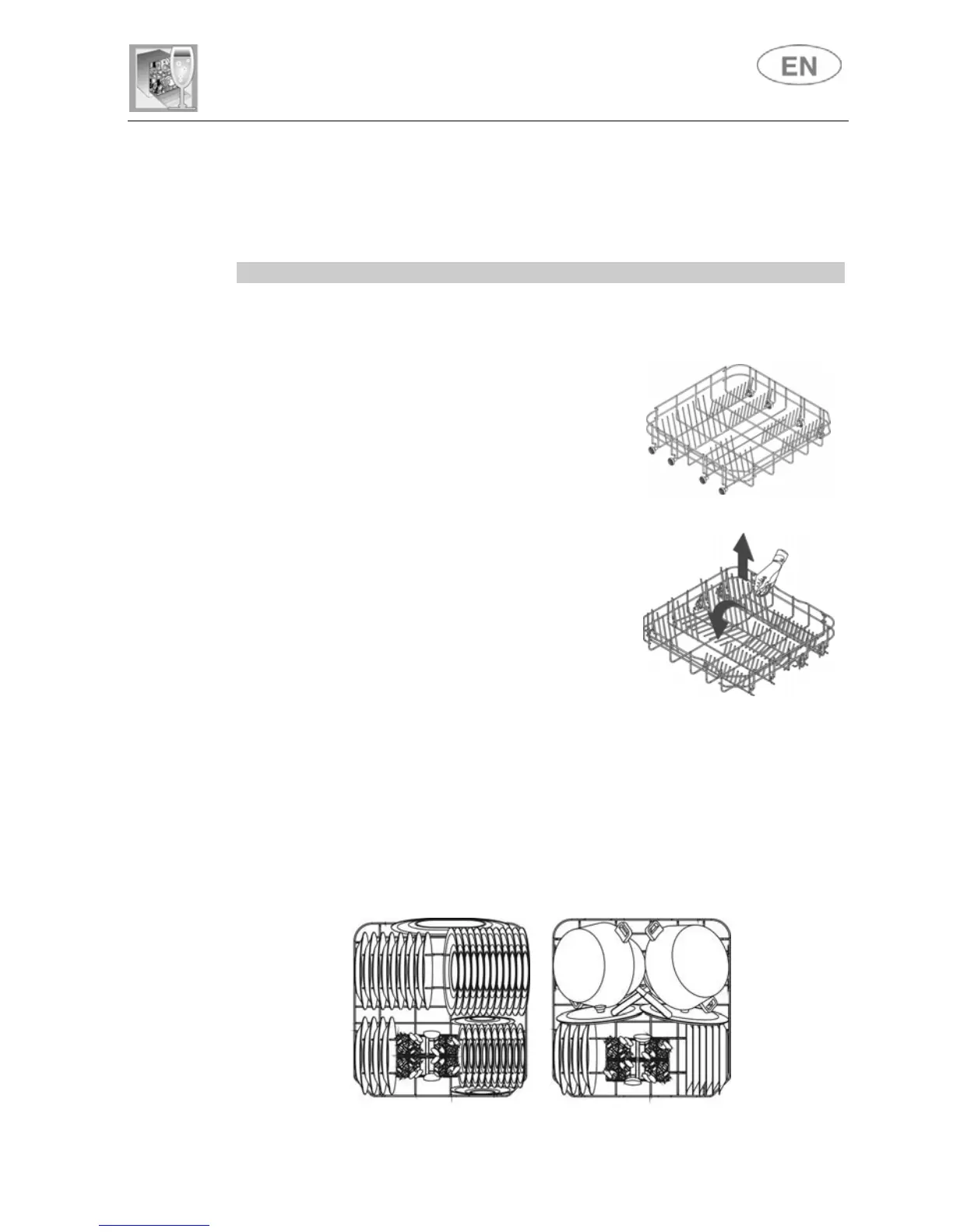 positioning them vertically. Pots, pans and their covers must be loaded