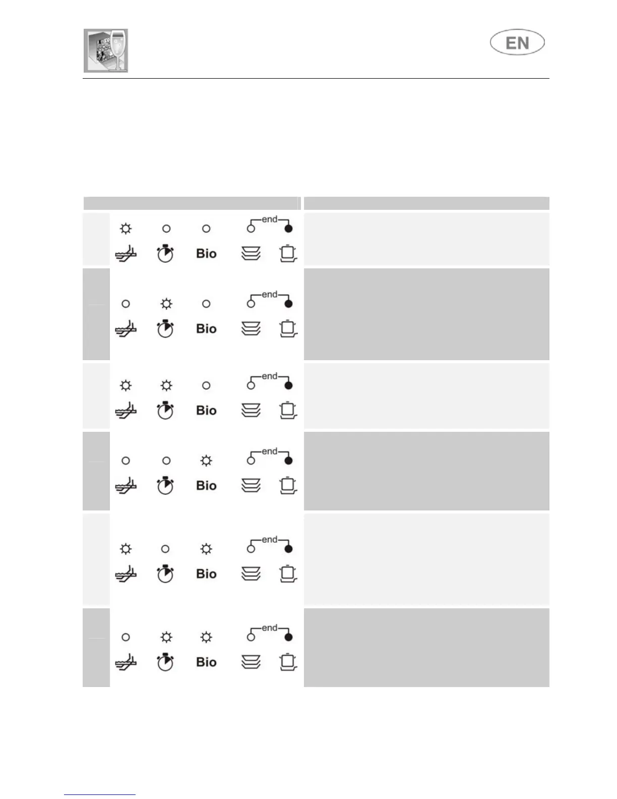 The dishwasher is capable of signalling a number of faults through the
