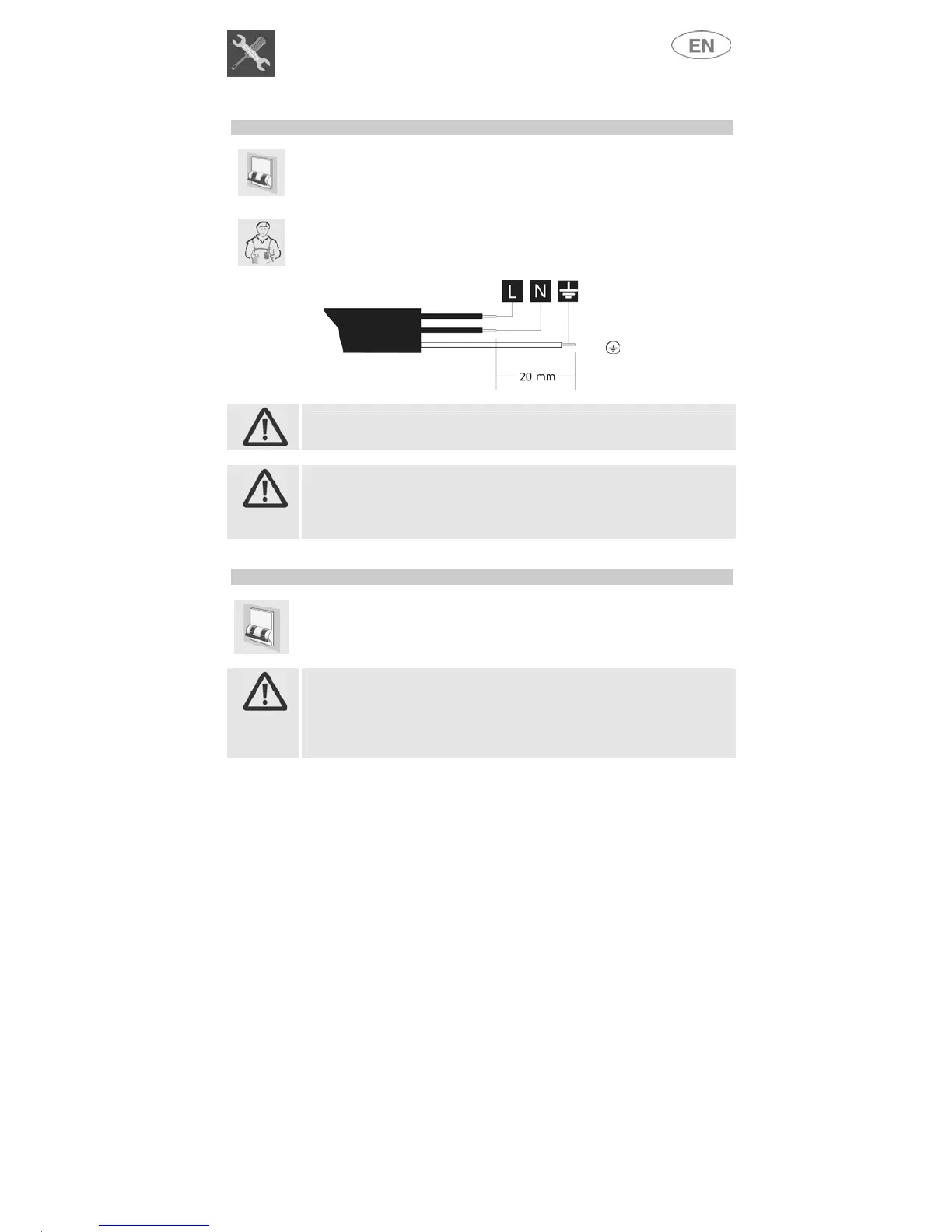THE CONNECTION TO THE MAINS MUST BE CARRIED OUT BY A