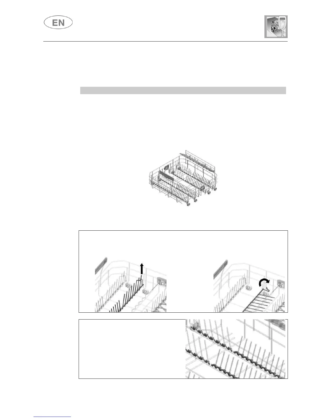 pans, bowls, etc.). To stow the racks flat, pull them upward and turn