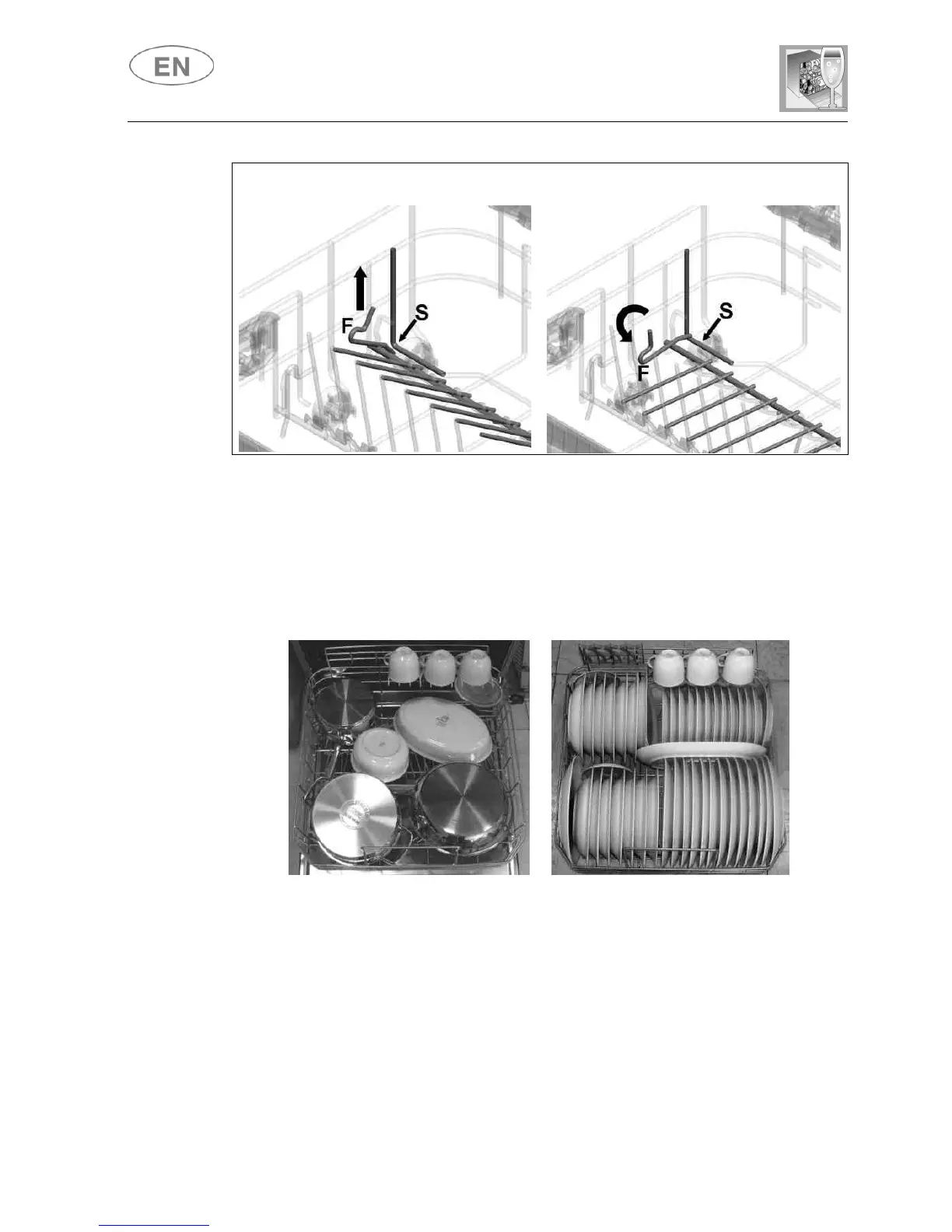 Carefully load flat plates, soup plates, dessert and serving dishes,