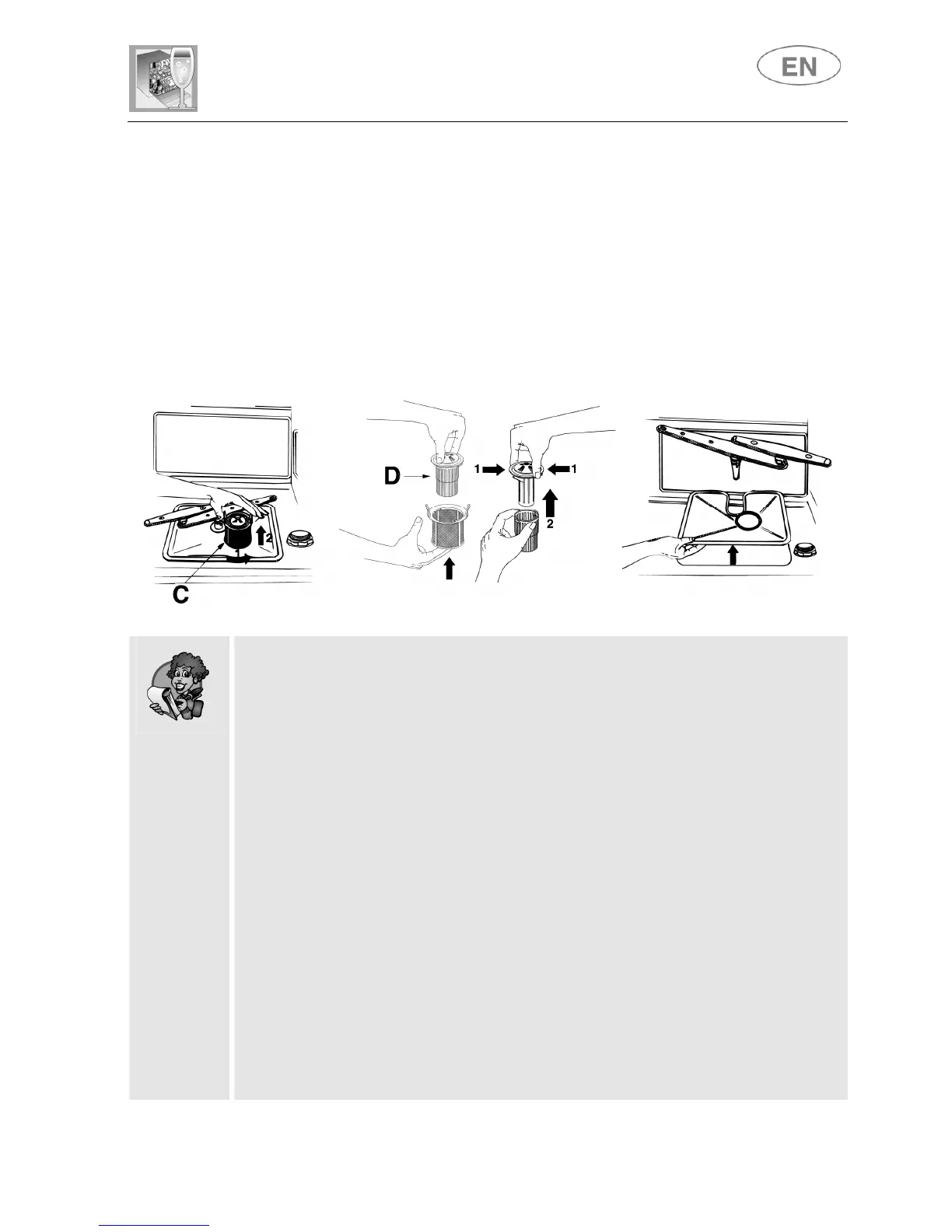 • When removing the filter, take care that there are no food residues