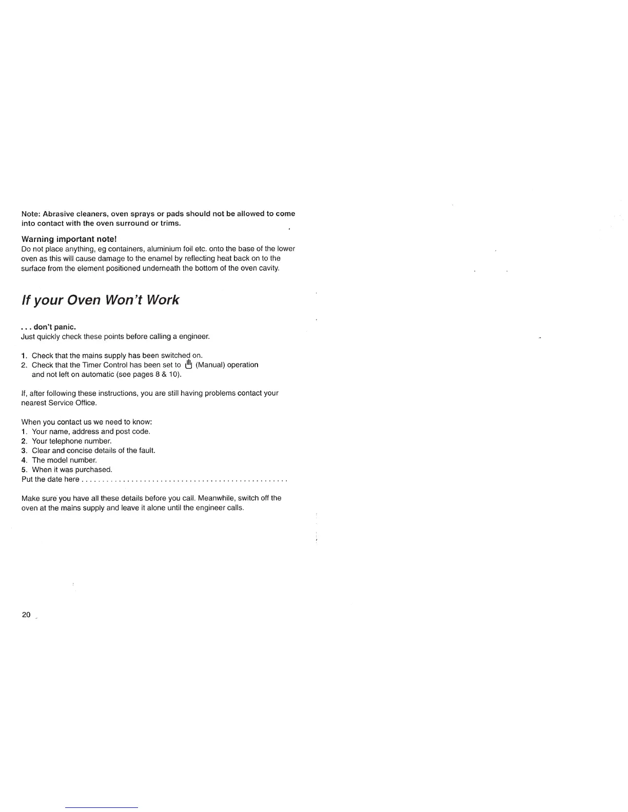 Smeg DO67CAS - If Your Oven Wont Work; Warning Important Note