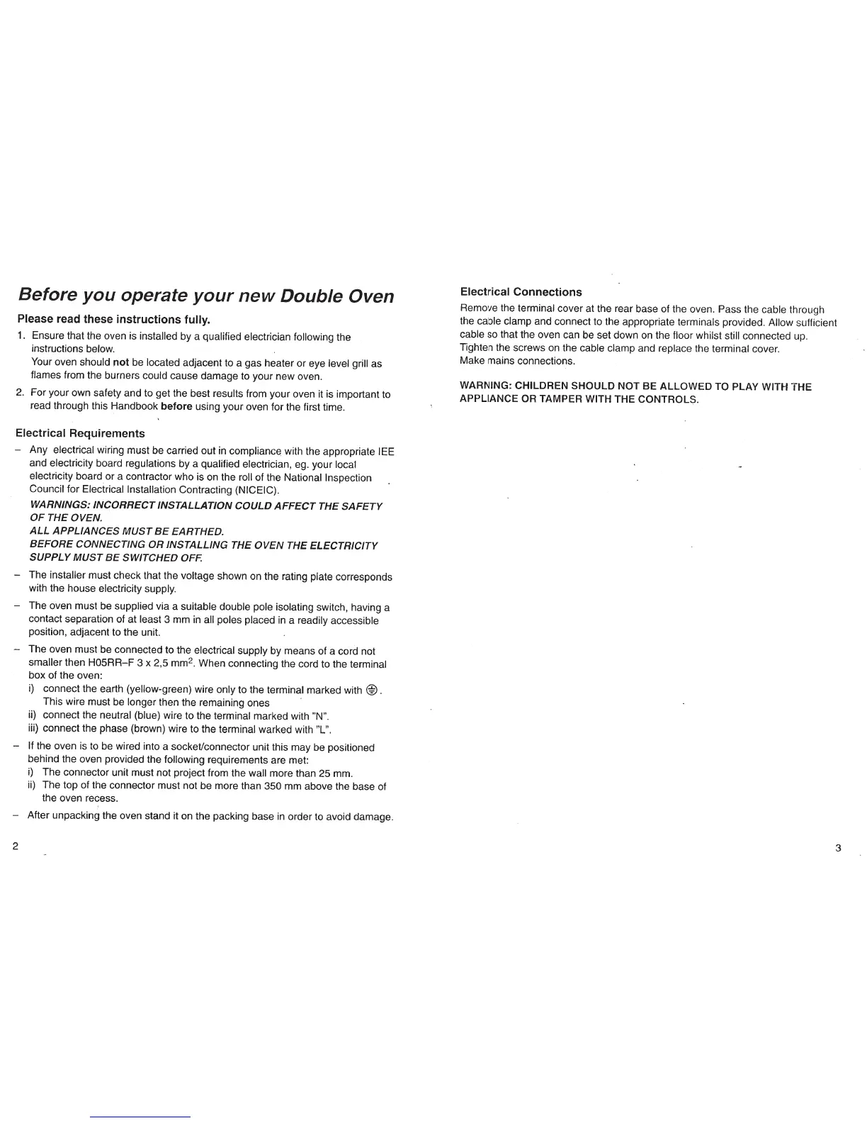 Smeg DO67CAS - Before You Operate; Electrical Requirements; Electrical Connections