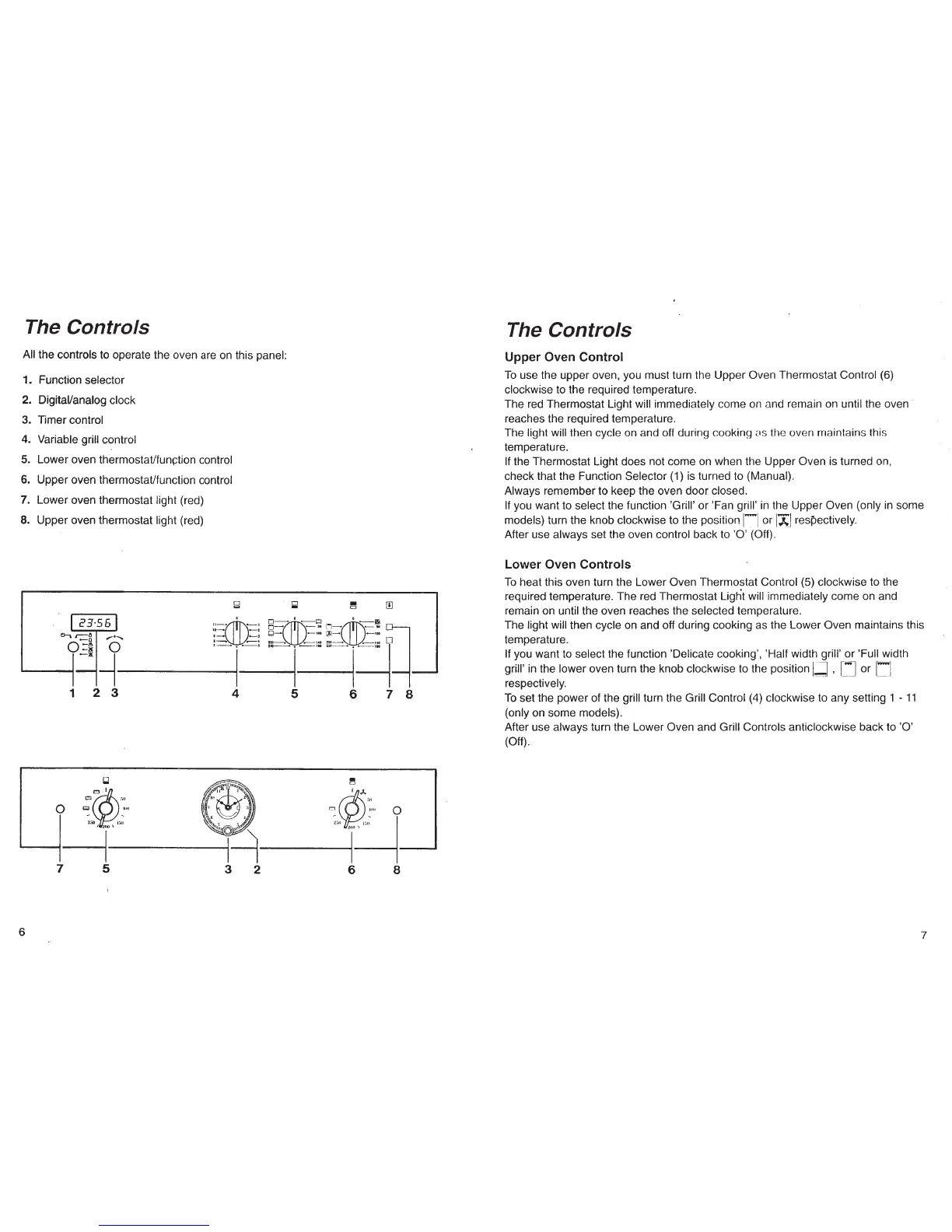 Smeg DO67CAS - The Controls; Upper Oven Control; Lower Oven Controls