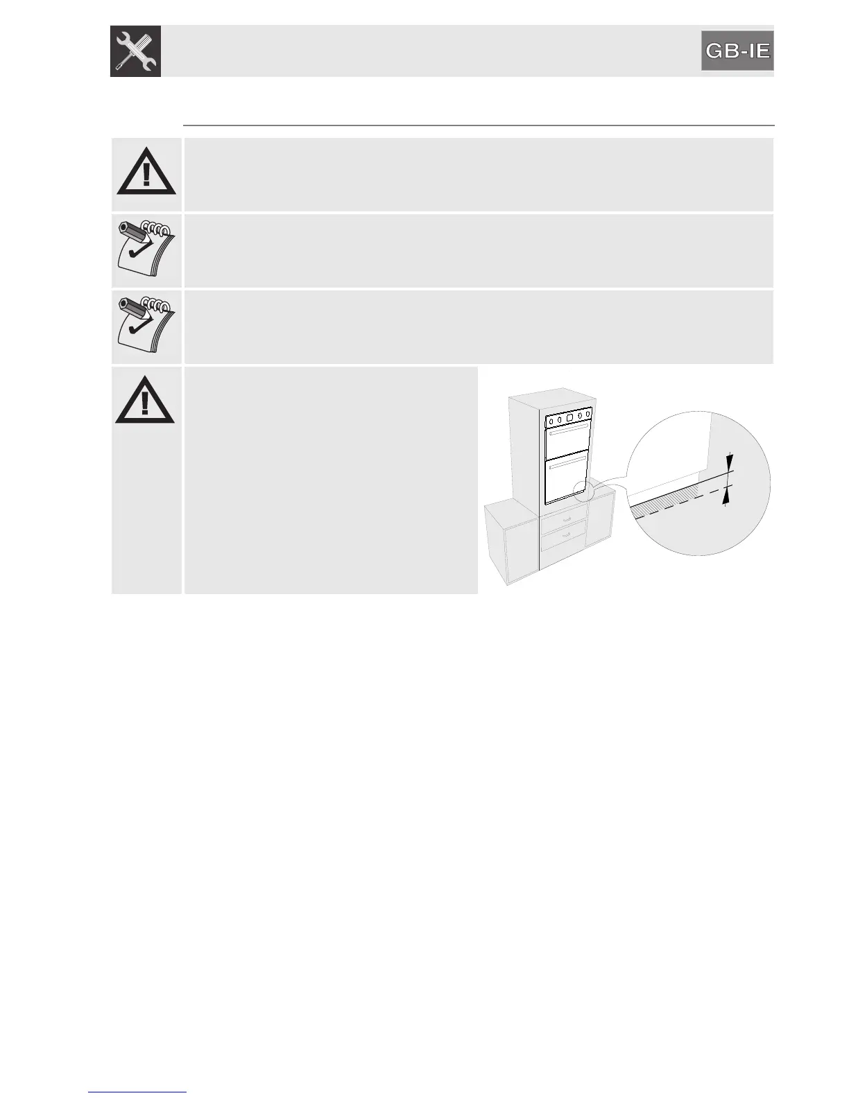Never use the oven door to lever the oven into place when fitting. Avoid exerting
