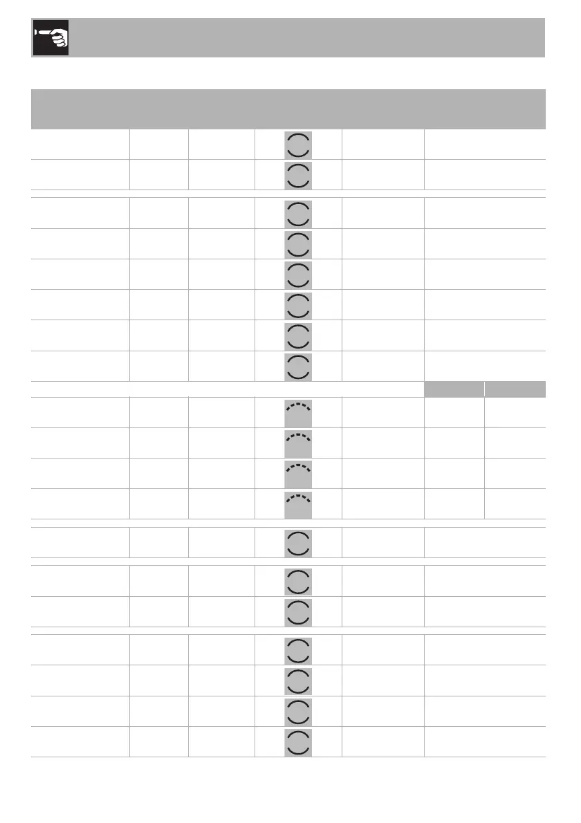 The times indicated in the table do not include preheating times and are provided as a guide only.