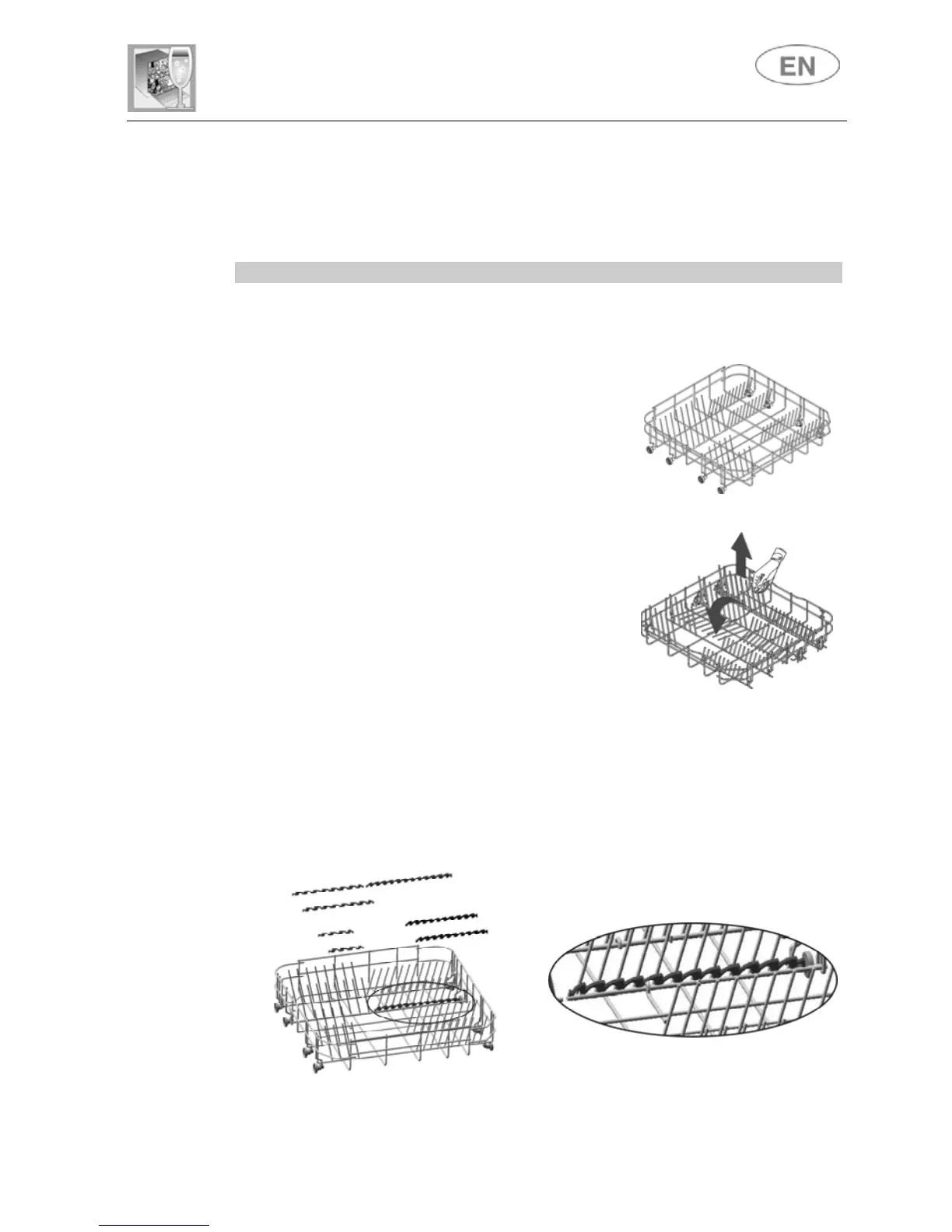 the drying of dishes. The inserts are supplied in the accessories bag; to