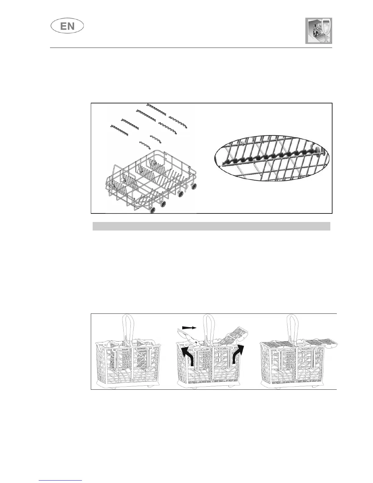 the drying of dishes. The inserts are supplied in the accessories bag; to