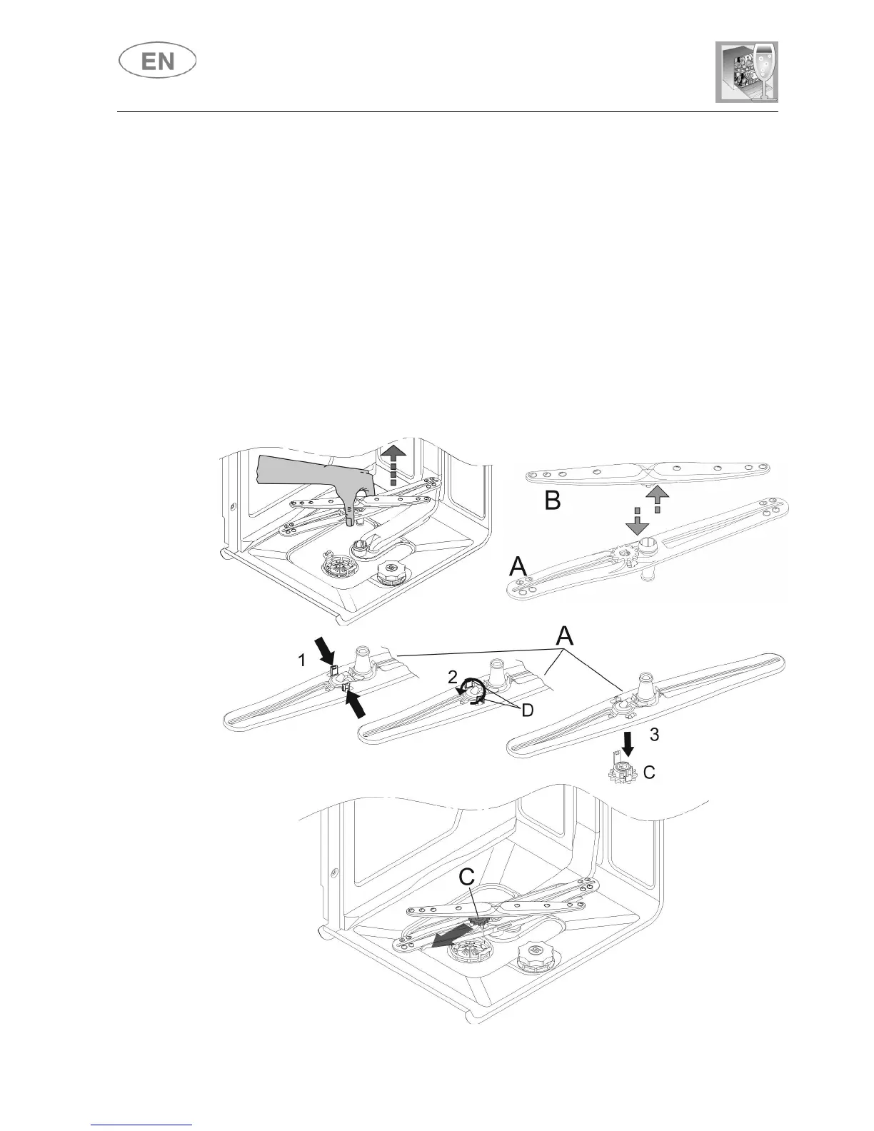 ● Take hold of the bottom spray arm unit and pull it upward to release.