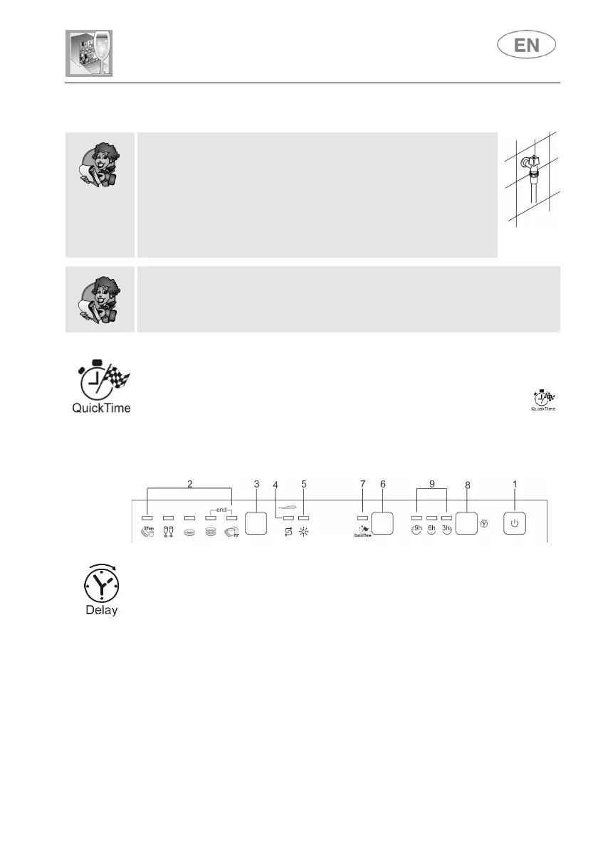 The start of the program can be delayed by 3, 6 or 9 hours.