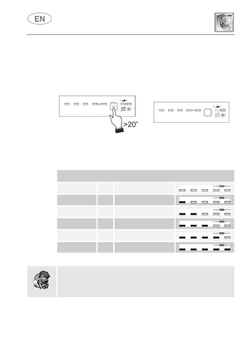 the salt indicator flashes; keep still pressed until the RINSE AID