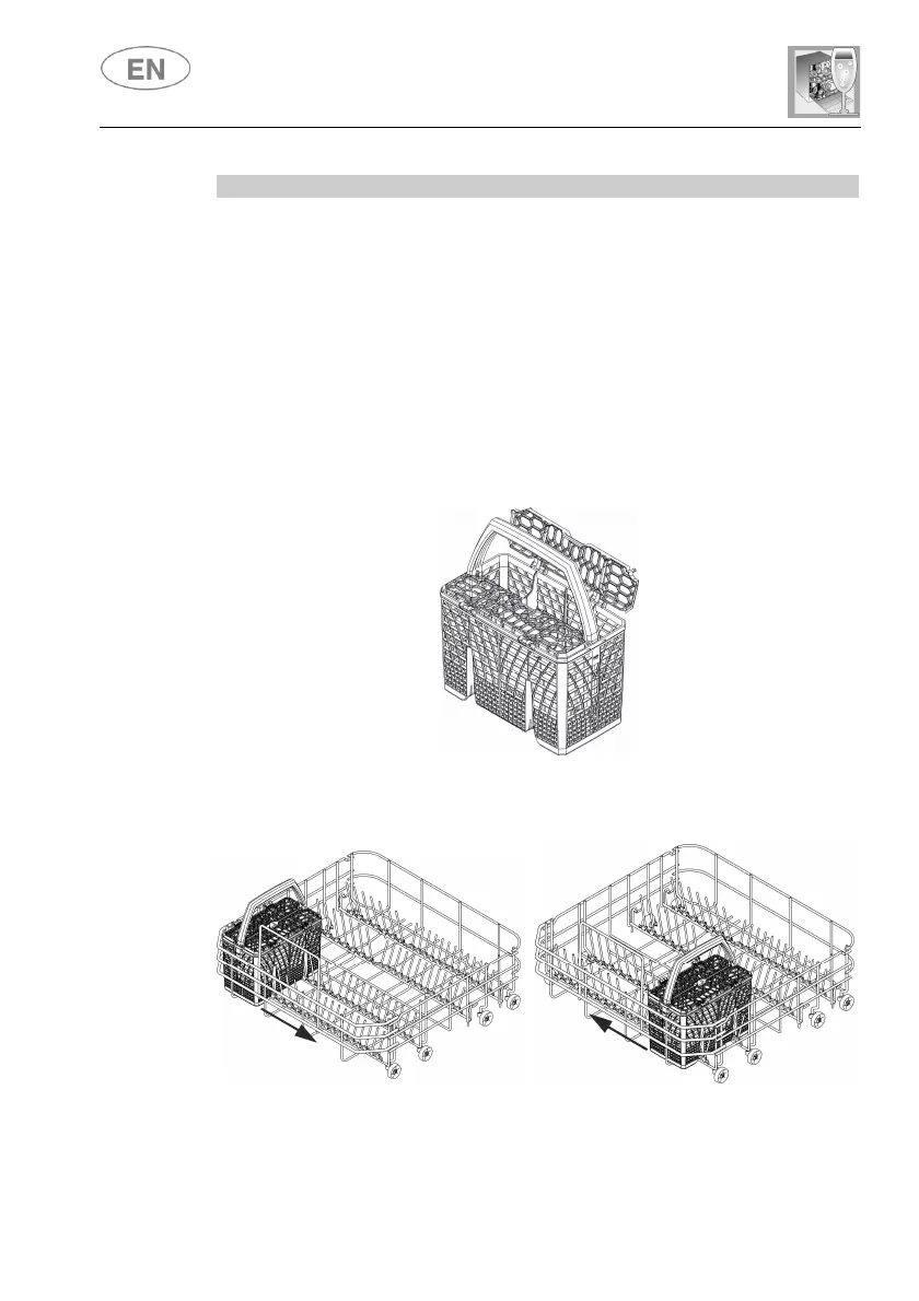interfere with the upper spray arm. The cutlery should be arranged in the