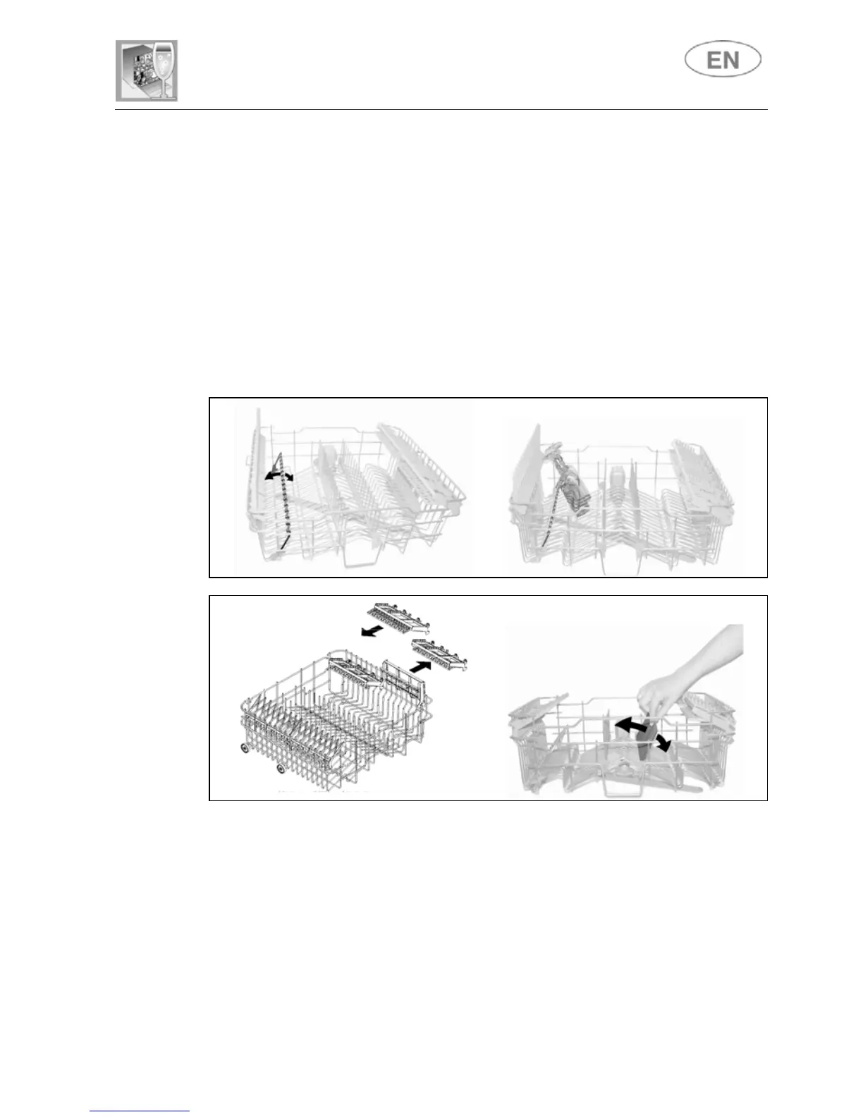 for teaspoons, pull out the sliding support. The racks can be